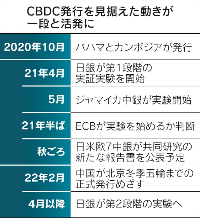 デジタル通貨、新興国が主導 世界の6割が実験へ(2021年4月6日 )